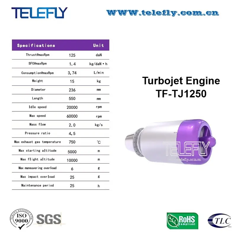 เครื่องยนต์ TF-TJ1250 Turbojet จาก Telefly เป็นระบบขับเคลื่อนรุ่นต่อไปที่ออกแบบมาพร้อมกับวิศวกรรมที่ทันสมัยความทนทานสูงและประสิทธิภาพที่โดดเด่น สร้างขึ้นด้วยความแม่นยำเพื่อให้เป็นไปตามมาตรฐานระดับโลก TF-TJ1250 โดดเด่นในชั้นเรียนในชั้นเรียนโดยการรวมประสิทธิภาพความมั่นคงและความน่าเชื่อถือในระยะยาว ในฐานะหนึ่งในซัพพลายเออร์จีนที่เชื่อถือได้ Telefly เสนอเครื่องยนต์นี้ด้วยตัวเลือกการขายส่งที่ยืดหยุ่นการกำหนดราคาการแข่งขันและการสนับสนุนหลังการขายที่แข็งแกร่ง